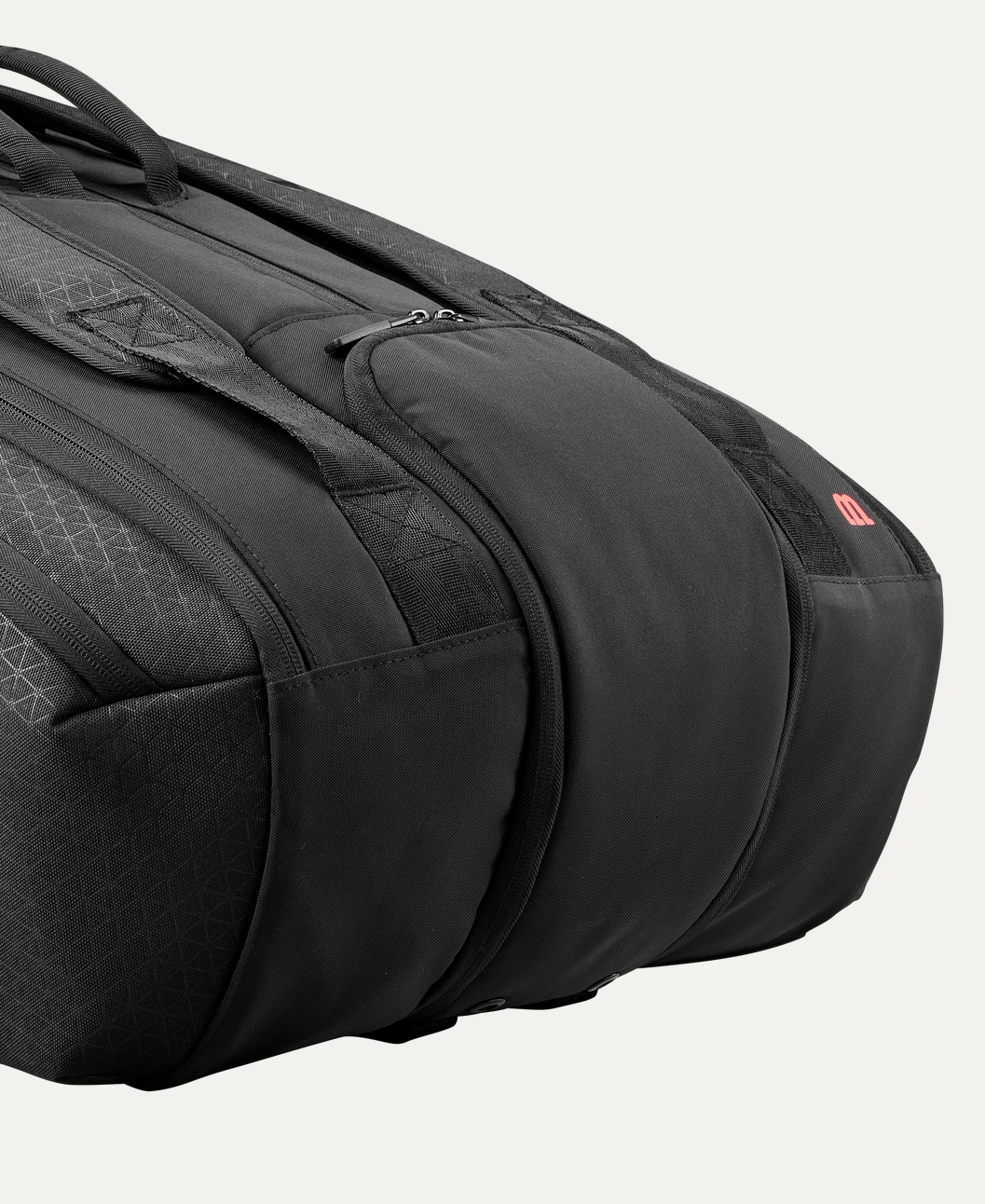 Este confecționat din material premium, înfrumusețat de modelul triunghiular subtil de la rachetele Clash. Caracteristicile suplimentare includ trei buzunare laterale exterioare pentru depozitarea obiectelor personale și a obiectelor de valoare mai mici și un sistem de transport dublu cu mâner și curele reglabile pentru rucsac.