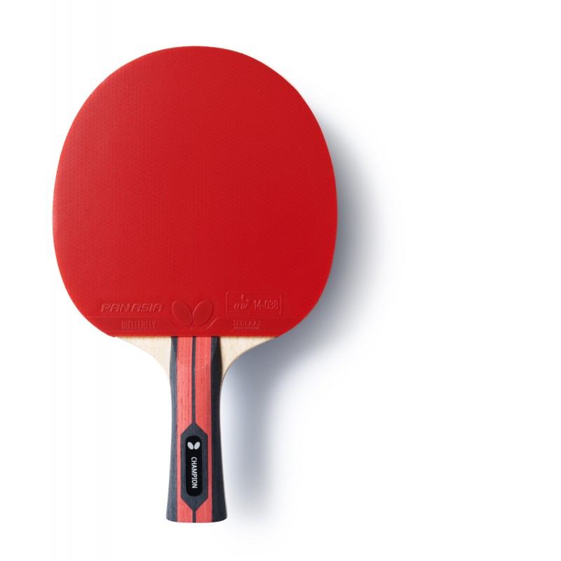 Team Butterfly Champion este conceput pentru jucătorii care preferă jocul ofensiv și axat pe rotație (spin). Echipată cu fețe de paletă Pan Asia, cu grosimea buretelui de 1,9 mm (între cauciucul superior și lemn), paleta de tenis de masă are aprobarea ITTF pentru a fi folosită în competiții și oferă atât elasticitatea cât și aderența necesare pentru a câștiga punctul lovind mingi rapide cu mult spin.