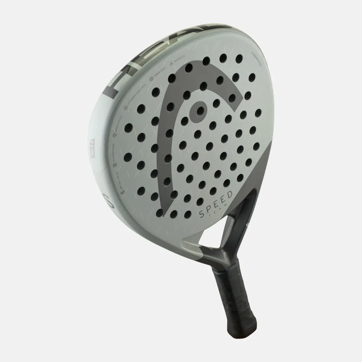 Racheta padel Head SPEED TEAM 2025 are o suprafață de lovire din fibră de sticlă pentru o atingere moale și o putere ușoară, în timp ce tehnologia îmbunătățită Soft Butt Cap adaugă un confort suplimentar.