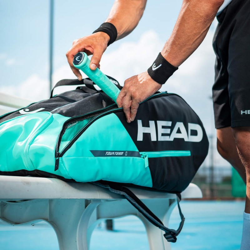Unul dintre cele trei compartimente spațioase are tehnologia de climatizare CCT+ care vă protejează rachetele împotriva temperaturilor extreme. Există, de asemenea, un compartiment pentru pantofi, un buzunar interior din plasă și un buzunar exterior pentru acces rapid. Datorită sistemului de transport, puteți alege între a pune TOUR TEAM 12R MONSTERCOMBI peste umăr sau pe spate. Ca o ilustrare a modului în care HEAD încearcă să reducă utilizarea plasticului, eticheta este făcută din hârtie reciclată și legată cu un șnur de cânepă.