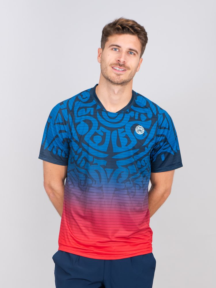 Tricoul in degradeu tipic BIDI BADU combinat cu un model grafic caracterizează acest tricou cu gât rotund.